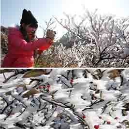 受强冷空气影响,大明山温度低至零下并于10日出现大面积冰凌雾凇景观。南国风雪美景让大明山变得格外妖娆,吸引了不少游客与摄影爱好者抢先上山拍摄。据介绍,大明山从上山公路22公里处至整个山顶均有冰凌雾凇,其中以约22公里观雪亭、25公里云龙佛光、26公里橄榄大峡谷等路段,有风口的景点为最佳欣赏雾凇位置。据大明山风景区管委会的工作人员介绍,冰凌雾凇景观预计会持续2-3天,所以想看雾凇的市民可以抓住机会抓紧时间上大明山了。